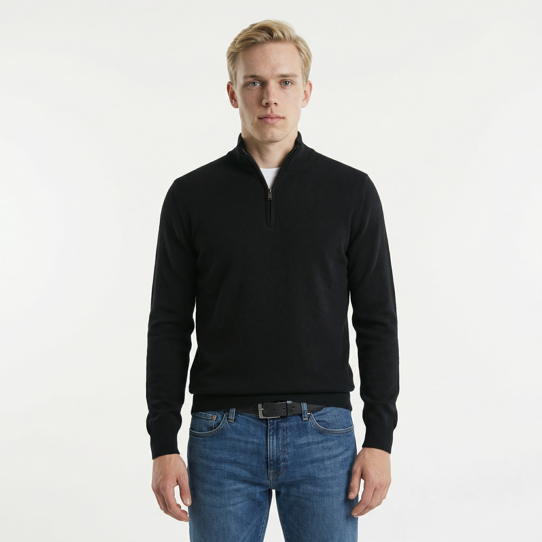 Deze merino wollen heren trui met V-hals en rits combineert een elegante uitstraling met comfortabel draaggemak. De verfijnde snit en klassieke V-hals zorgen voor een verzorgde look, terwijl de ritsdetail een moderne touch toevoegt. Een veelzijdige keuze binnen heren truien en merino wollen truien in Nederland.