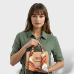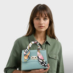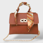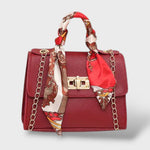 Diese elegante Handtasche aus hochwertigem Leder vereint zeitlosen Stil mit moderner Raffinesse. Der goldfarbene Verschluss sorgt für einen Hauch von Luxus, während der mit einem bunten Schal verzierte Henkel dem Design eine verspielte Note verleiht. Perfekt für den Alltag, Dinnerdates oder besondere Anlässe – sie verleiht jedem Outfit Klasse und Charme.