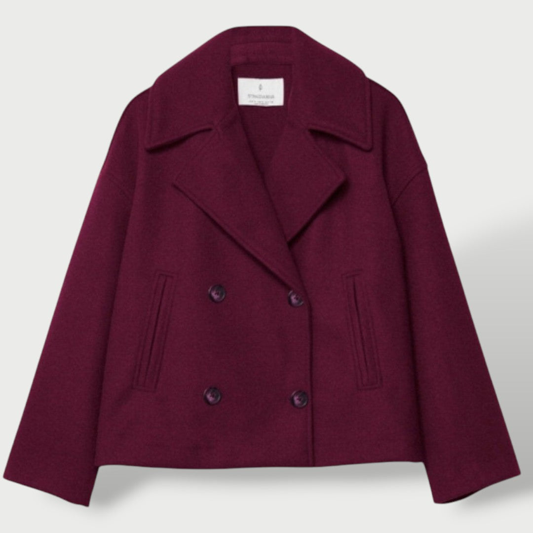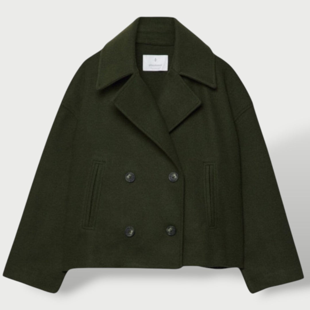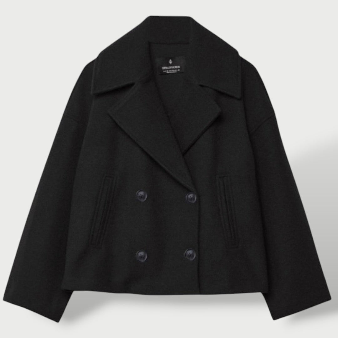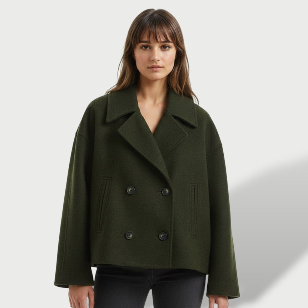 Ontdek de perfecte mix van elegantie en comfort met deze korte, dubbelrijige damesjas. Ideaal voor zowel casual als chique outfits, deze jas voegt direct een stijlvolle touch toe aan je look.