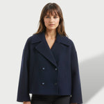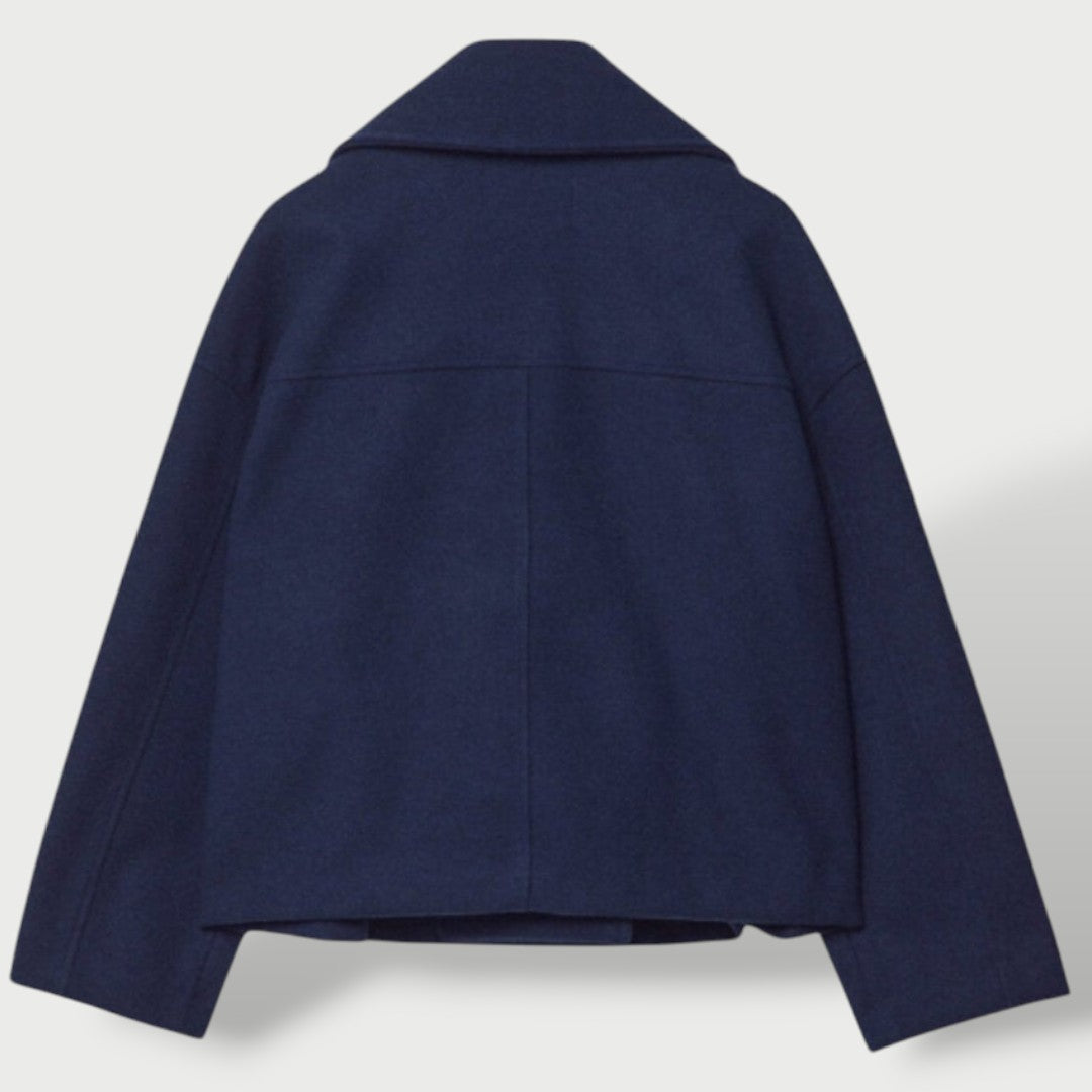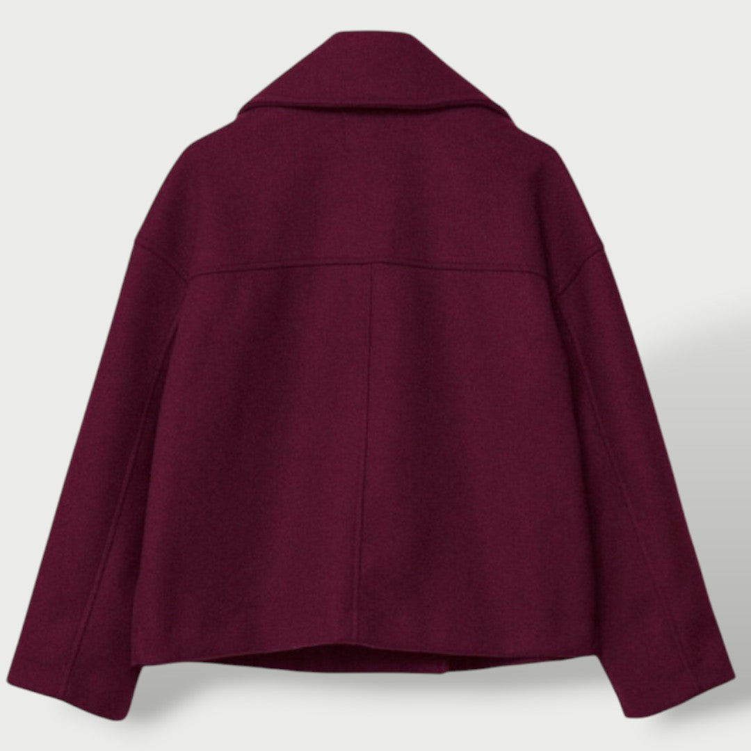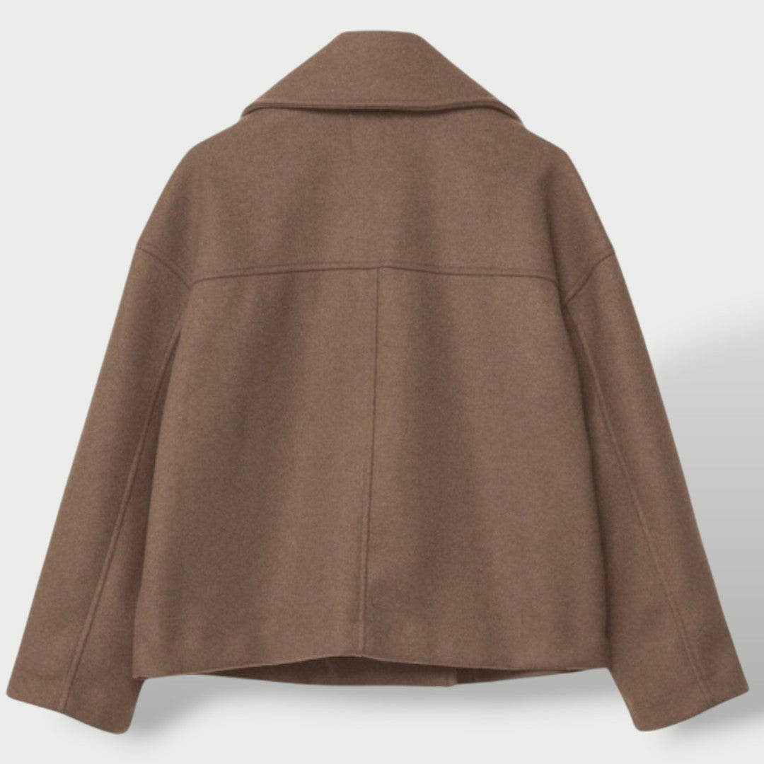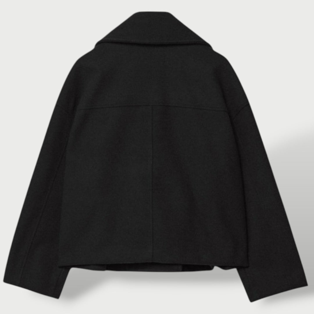 Ontdek de perfecte mix van elegantie en comfort met deze korte, dubbelrijige damesjas. Ideaal voor zowel casual als chique outfits, deze jas voegt direct een stijlvolle touch toe aan je look.