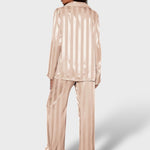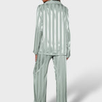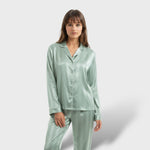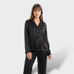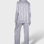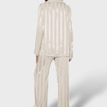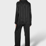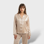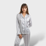 Deze stijlvolle pyjama set met lange mouwen en knopen biedt ultiem comfort en een vleugje glamour voor elke avond. De zijdezachte stof en losse pasvorm zorgen voor een heerlijk ontspannen gevoel, terwijl het klassieke ontwerp met bijpassende broek tijdloze elegantie toevoegt aan je loungewear. Perfect voor een rustige nacht of een relaxte ochtend thuis.