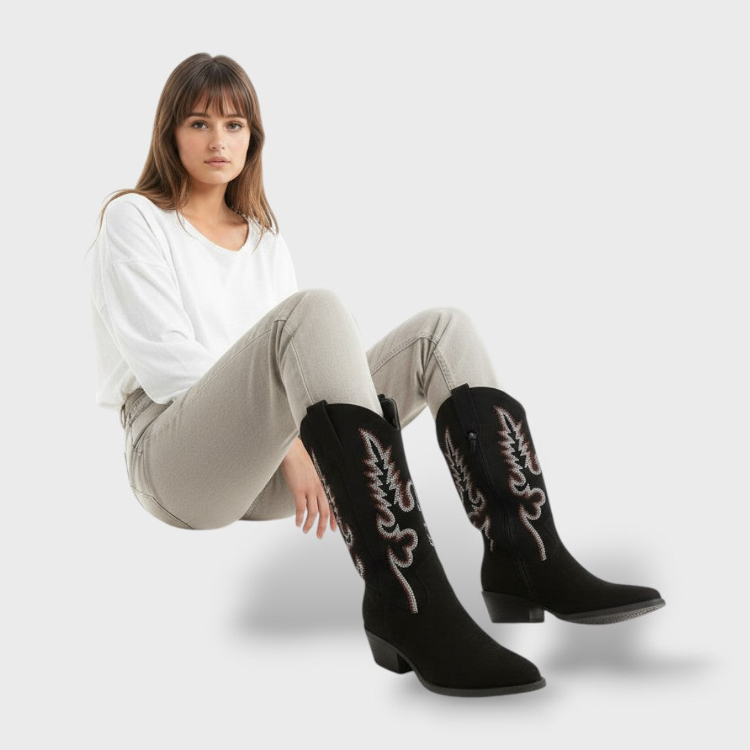 Geborduurde Cowboylaarzen voor Dames met Lage Hak