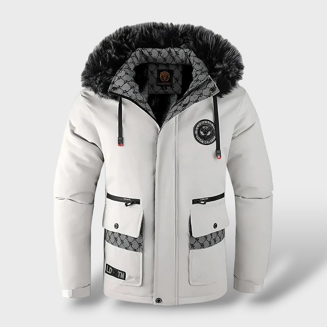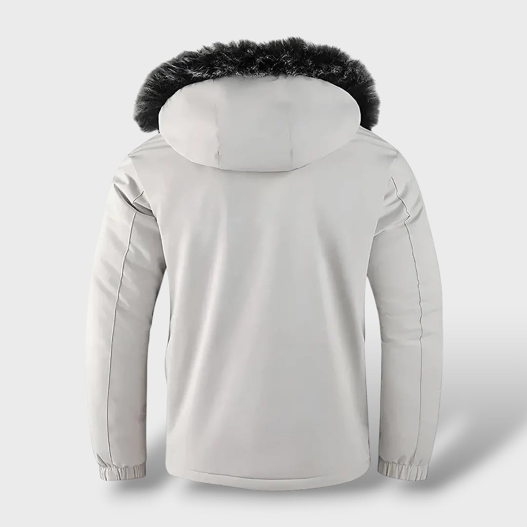 Het gewatteerde donsjack voor heren is ontworpen voor ultiem comfort en maximale warmte, zelfs onder de koudste omstandigheden. Gevuld met premium 900-fill power dons en voorzien van een ultrazachte voering, biedt dit jack uitzonderlijke isolatie zonder zwaar aan te voelen. De robuuste, dicht geweven buitenlaag beschermt tegen wind, sneeuw en regen, terwijl het lichte ontwerp optimale bewegingsvrijheid garandeert.