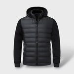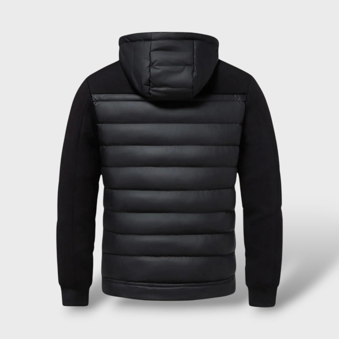 Deze premium hybride jas combineert de functionaliteit van een puffer met de verfijning van een softshell. Gemaakt van een hoogwaardige softshellmix met gewatteerde voering, biedt hij uitstekende isolatie en bescherming tegen koude dagen — zonder in te leveren op stijl.