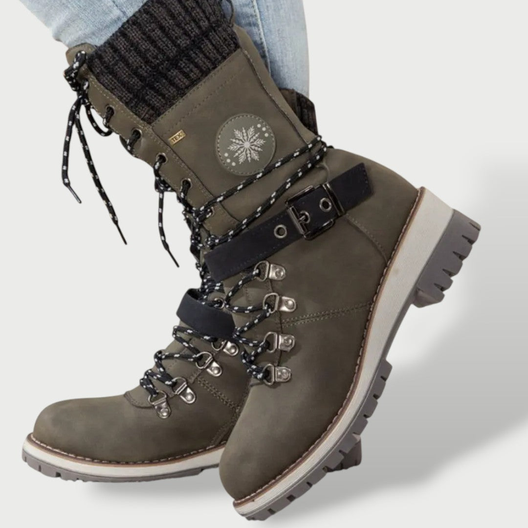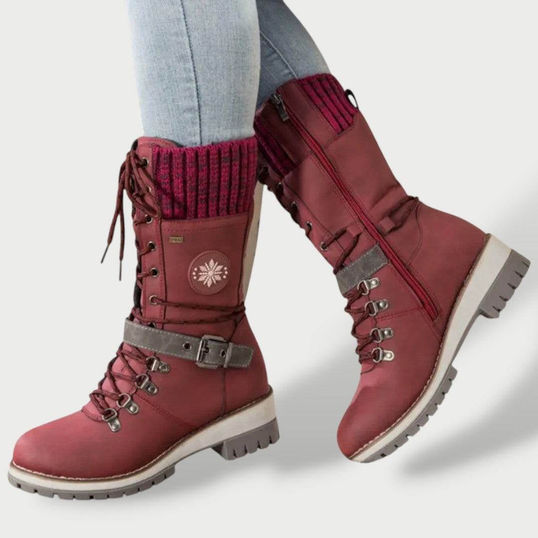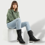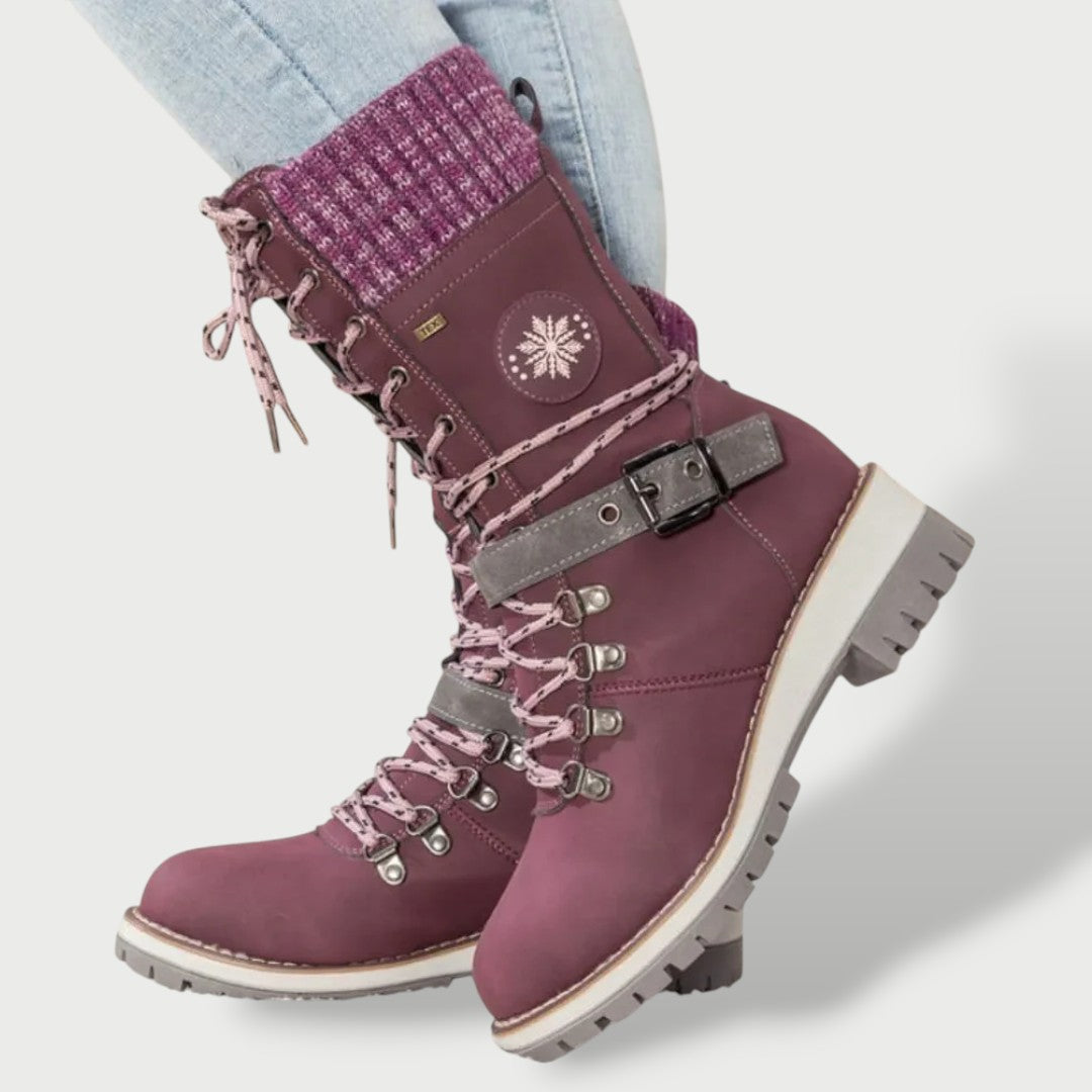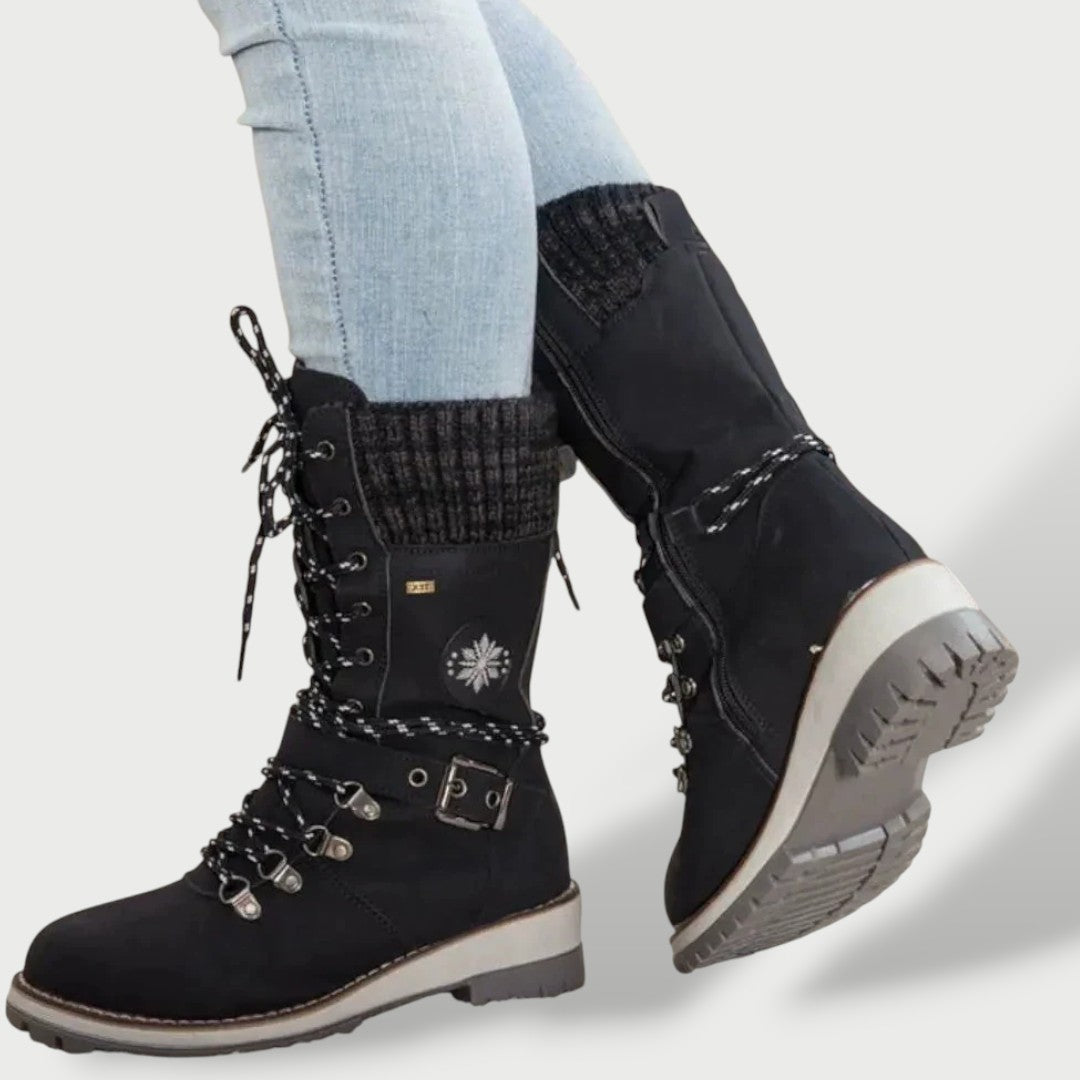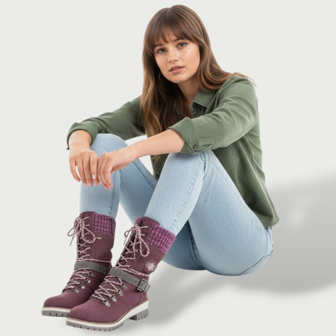 Sophie Winter Dames Sneeuwlaarzen met Veters en Brei‑Manchet