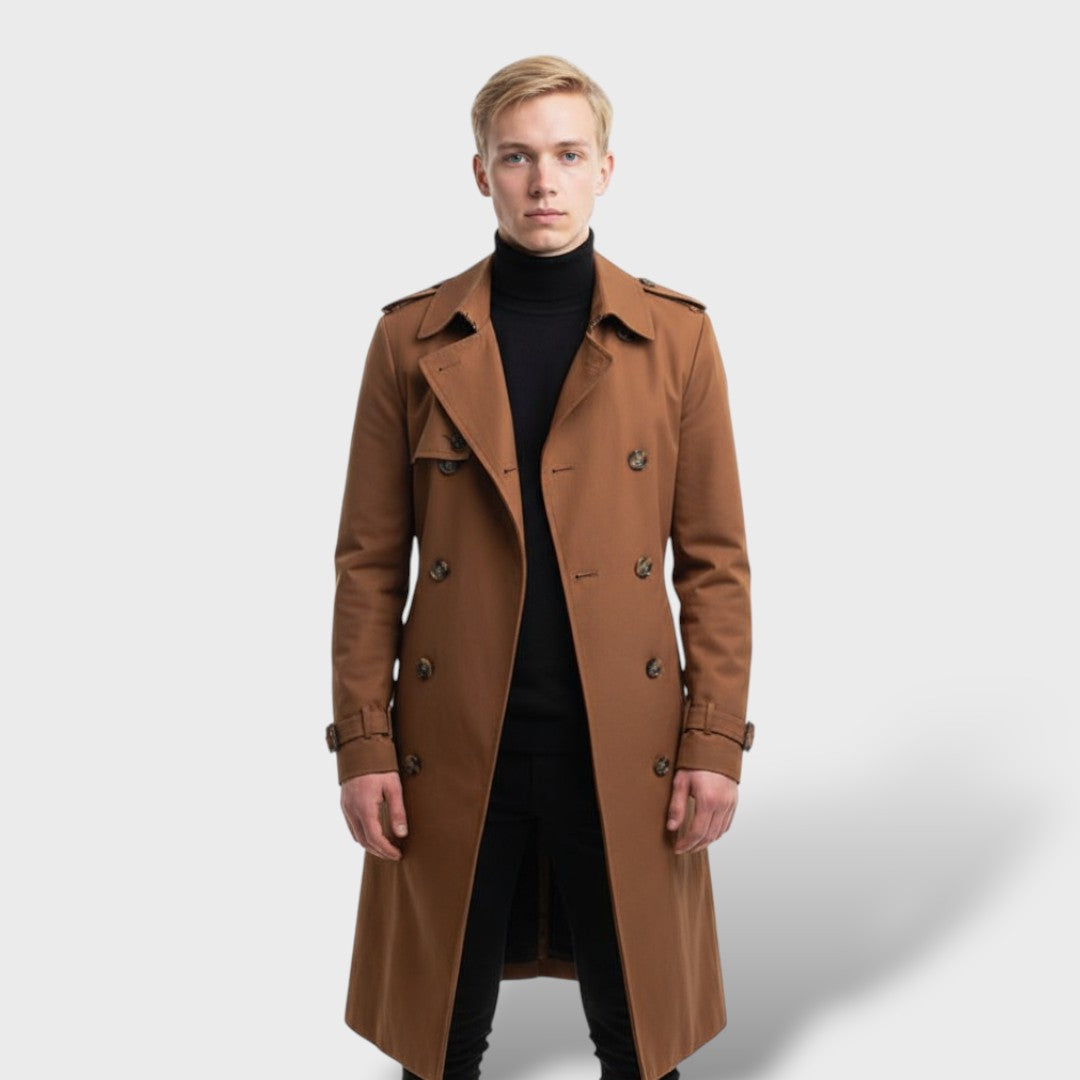 Deze waterdichte heren trenchcoat combineert moderne elegantie met praktisch comfort. Gemaakt van hoogwaardig, ademend materiaal dat je beschermt tegen regen en wind, zonder concessies te doen aan stijl. Het tijdloze ontwerp met een eigentijdse pasvorm maakt deze jas ideaal voor zowel zakelijke dagen als ontspannen weekends.